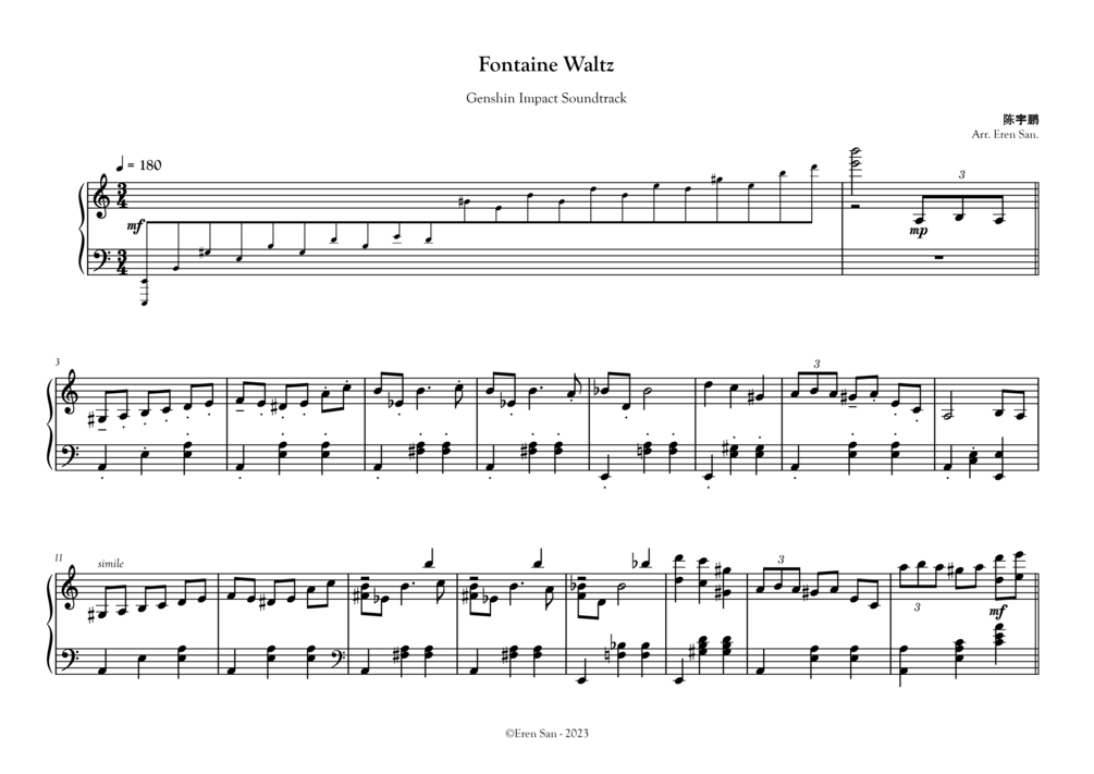 [Genshin Impact] "Fontaine Waltz" Piano Arrangement